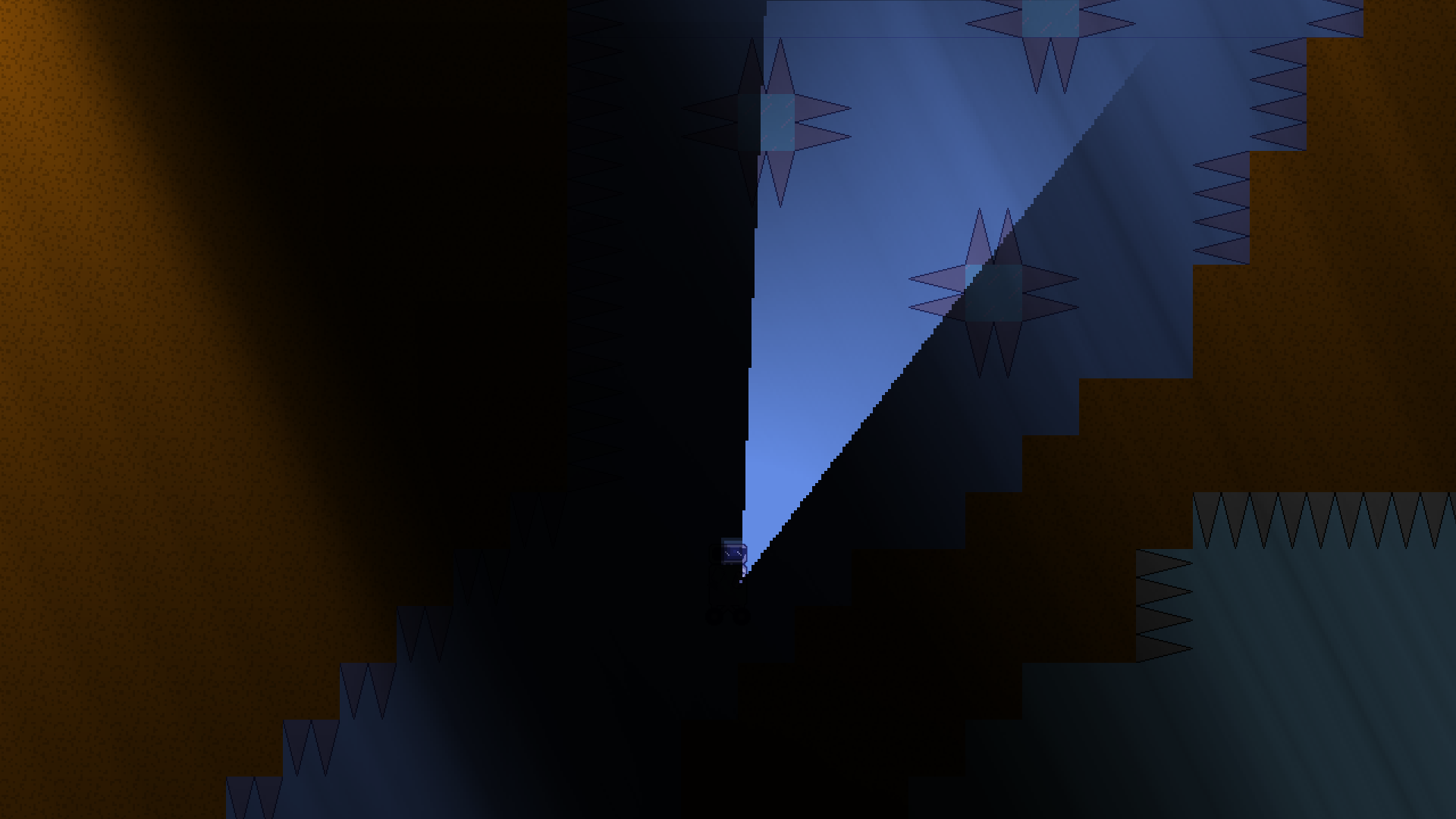 You play as a robot, and your task is to get to the flag using various modifications. But be careful, some things can kill you. And when you complete the game, you will unlock cheats and the map editor. In the map editor, you can create any map, share it for your friend so that he passes it, or download your friend's map and go through it yourself. You can also upload any music you want to the game.